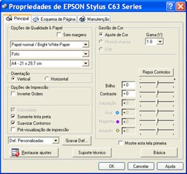Luis Roberto, de São Paulo/SP, mandou as telas de “propriedades” da impressora dele :