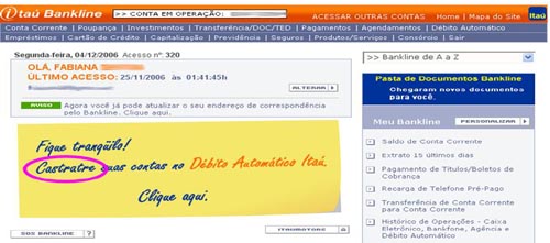 O Itaú bankline realmente é o que eu acho o mais completo entre vários bankings que conheço. O problema é acessar as dezenas de funções disponíveis. A cada função, precisamos clicar em uma das categorias na barra superior. Depois de clicar, aparece uma página com uma lista gigante de opções e nem sempre é fácil encontrar logo a opção desejada.